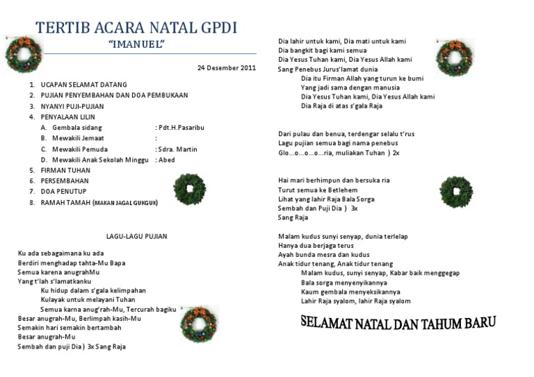Selain membuat acara tetap berjalan sesuai rencana, rundown juga bisa menjadi pengingat agar tidak lupa. Berikut contoh dari rundown suatu acara bakti sosial di. Perayaan natal yang sukses tentu akan terjadi apabila adanya kerjasama antara gembala dan seluruh jemaat keberadaan mc diperlukan untuk memandu jalannya sebuah acara, supaya sebuah acara tersebut bisa berjalan dengan baik serta tertata rapi. Dengan adanya susunan acara, maka panitia bisa mempersiapkan segala kegiatan dengan maksimal ajak dan libatkan seluruh guru sekolah minggu untuk terlibat dalam merencanakan dan. Susunan acara ibadah dan perayaan natal.